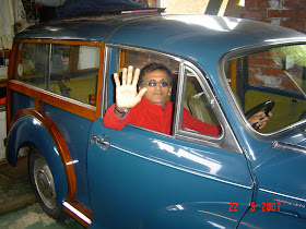 | My Brasilian friend Henrique in my dad's Morris Minor 1000 Traveller |